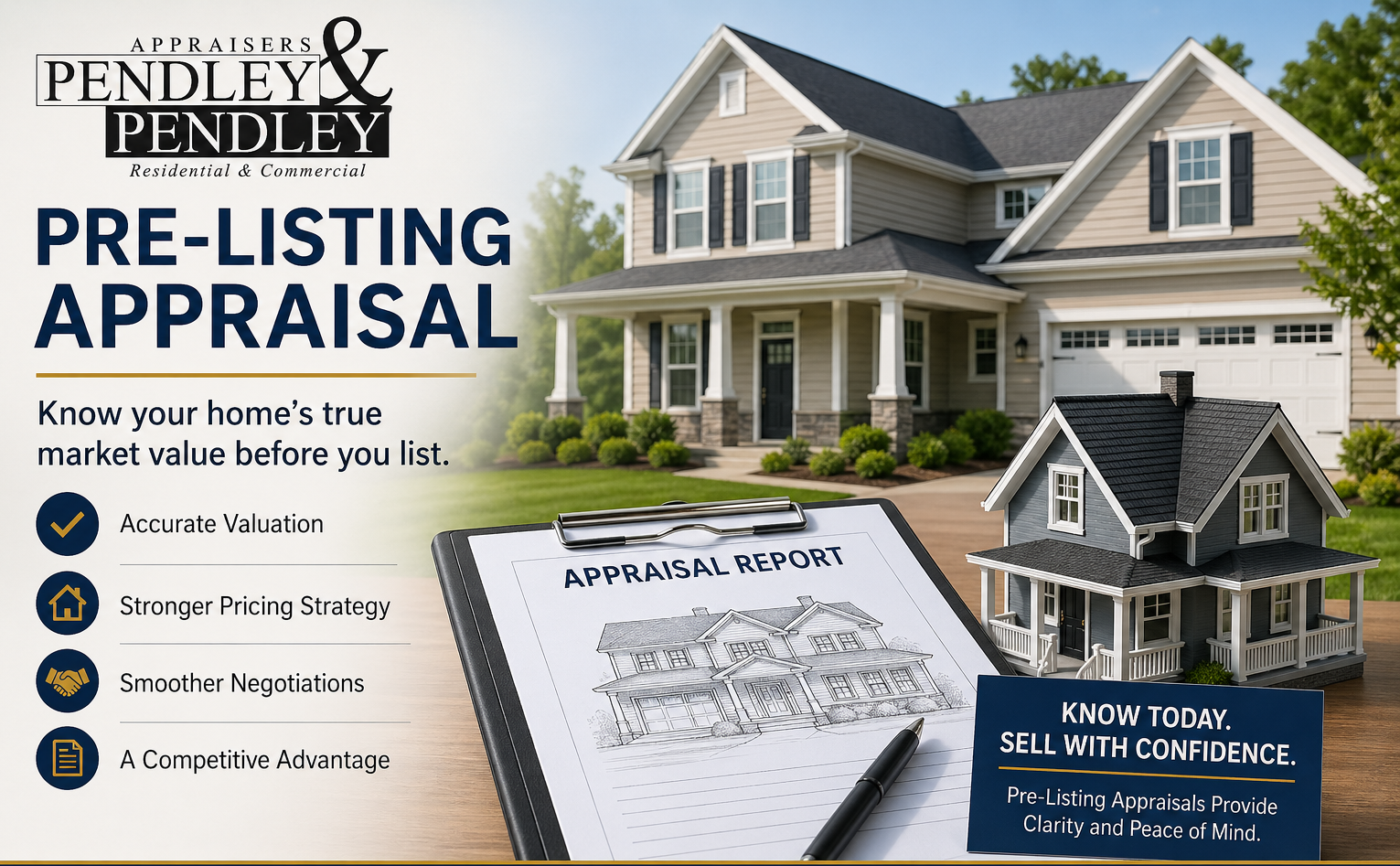 Pendley & Pendley Appraisers has the expertise you need for both Pre-Listing and Pre-Sale appraisal services. As the market continues to shift and inventory increases, being properly prepared is key to listing—and selling—successfully.